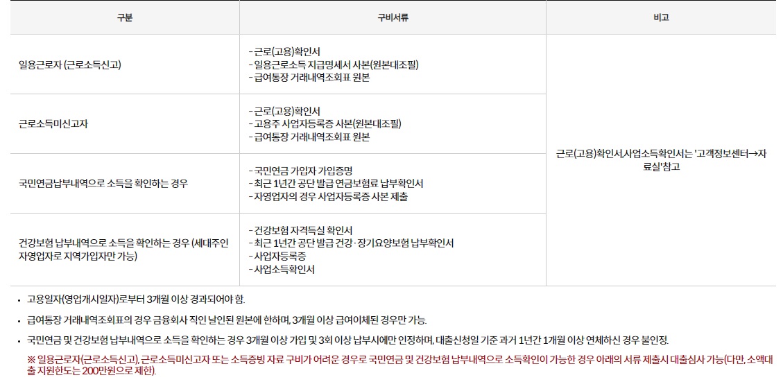 ※ 법원 개인회생절차 인가시 포함되지 않은 한국자산관리공사, 국민행복기금, 한마음금융, 희망모아 채무내역(안전망 대출, 바꿔드림 론 지원내역)을 보유하고 있는 경우 약정체결 후 6개월 이상 성실상환 또는 완제해야 대출신청 가능함.