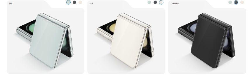 ◎ 제트플립5의 기본색상은 그라파이트, 크림, 라벤더, 민트로 구성되어 있습니다