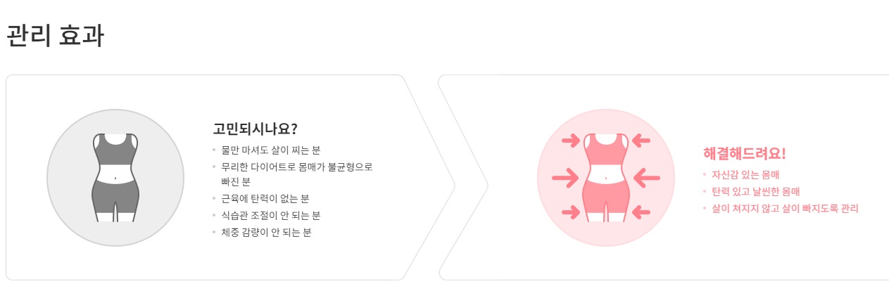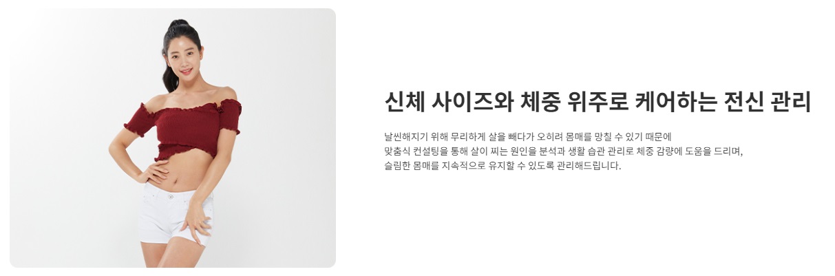 다양하고 세부적인 프로그램으로 전신을 관리하는 프로그램을 운영, 무리한 다이어트로 몸매 불균형이 심하신 분, 근육에 탄력이 없고 식습관이 조절이 안되시는 분들이 많이 찾고 있습니다.