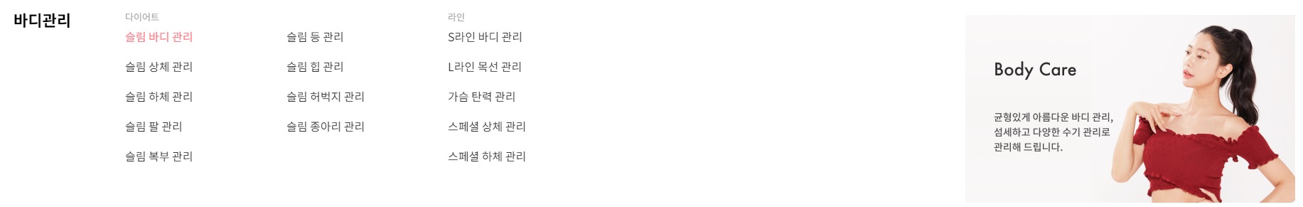 각 신체마다 알맞은 다양한 프로그램을 운영중에 있으니 아래 링크를 통해서 자신에게 맞는 케어를 찾아보세요.
