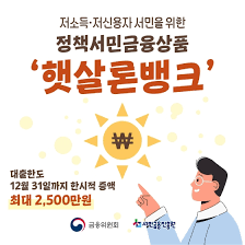 - 지원대상 : 정책서민 금융 성실상환자로, 부채 또는 신용도가 개선된 저신용, 저소득자